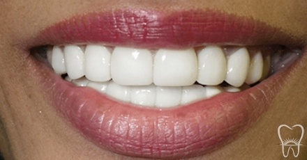 Dr. Makadia replaced the failing lower bridge and gave her the option to place veneers for her upper teeth, which was possible as she had strong and healthy teeth. She wanted a bright smile and selected the shape, size and color of the teeth.